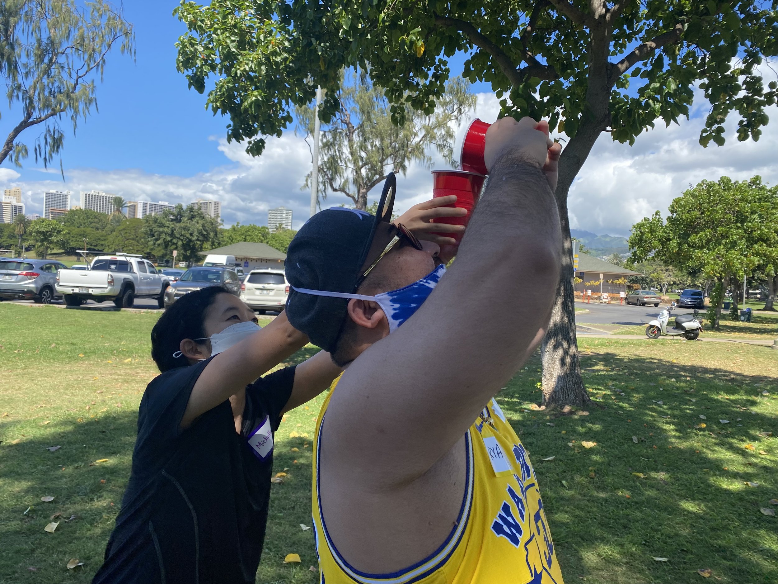 On Sunday, members got to enjoy a nice sunny day outdoors! We first played picture Scavenger Hunt, where members took pictures together at various places around Kapiolani Park. After lots of walking, members enjoyed a yummy bento and fellowship. After lunch, we played a series of fun team games.